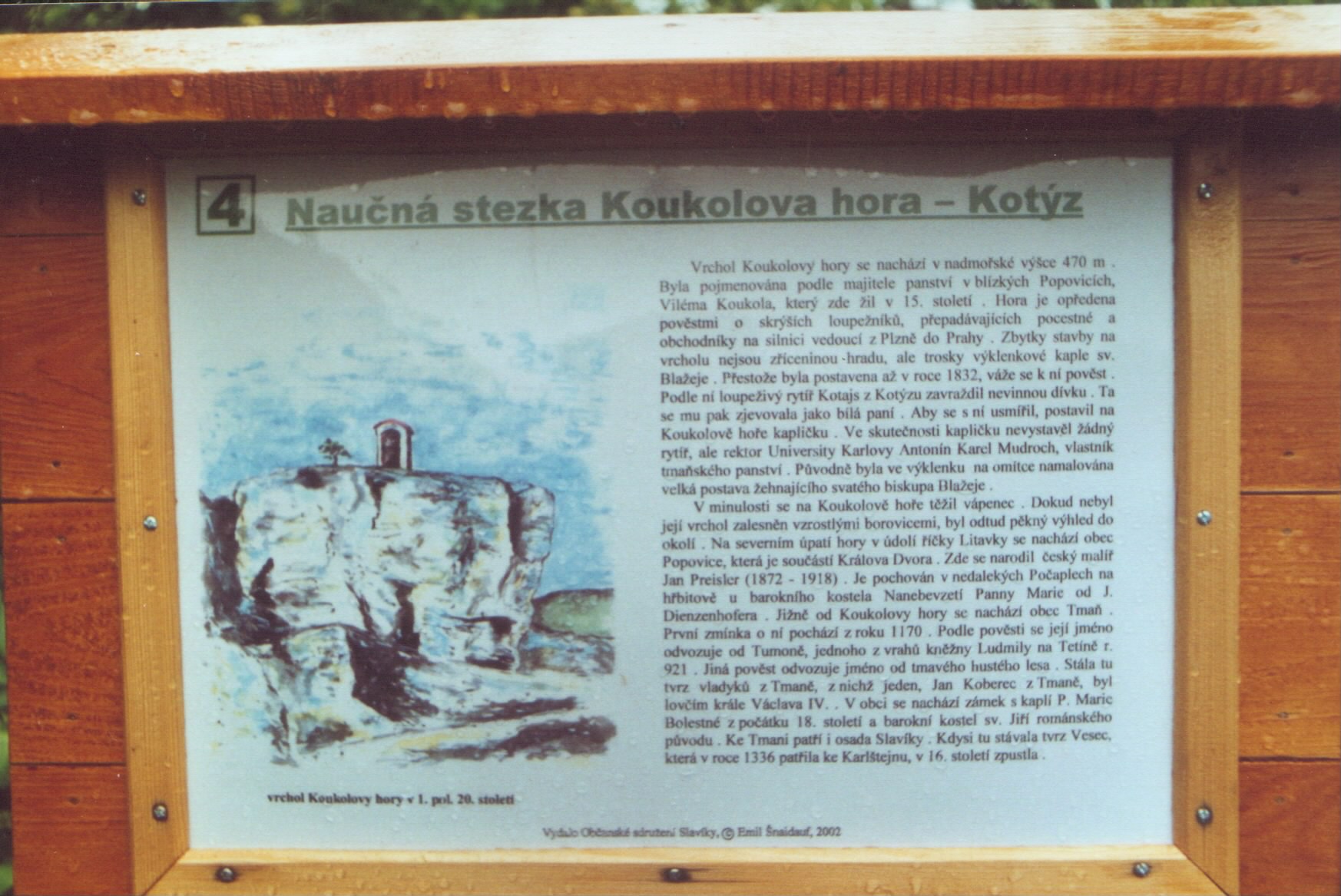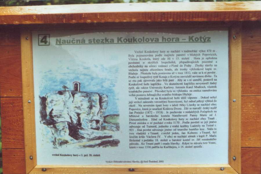 Tabule naučné stezky stojící na vrcholu Koukolovy hory