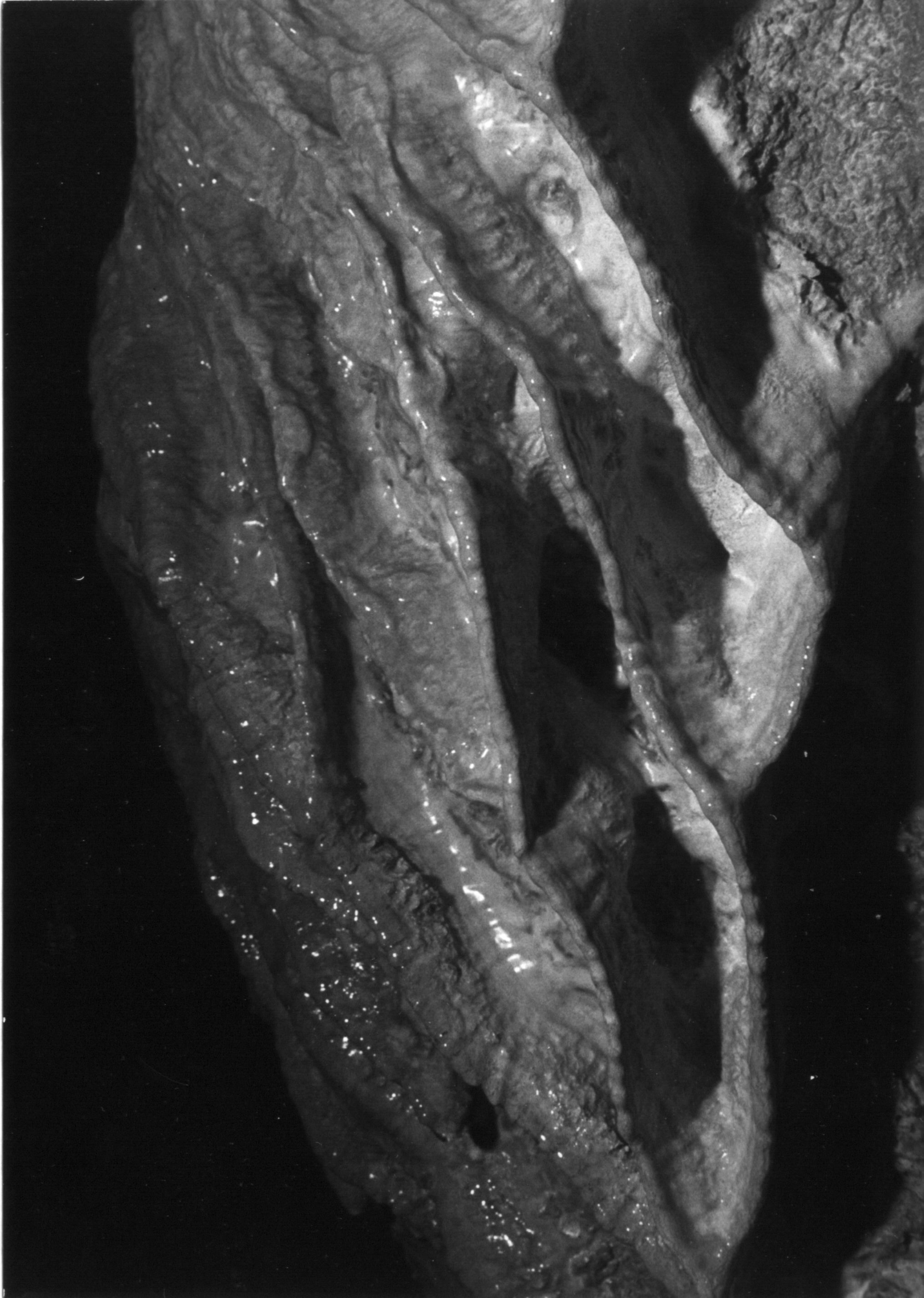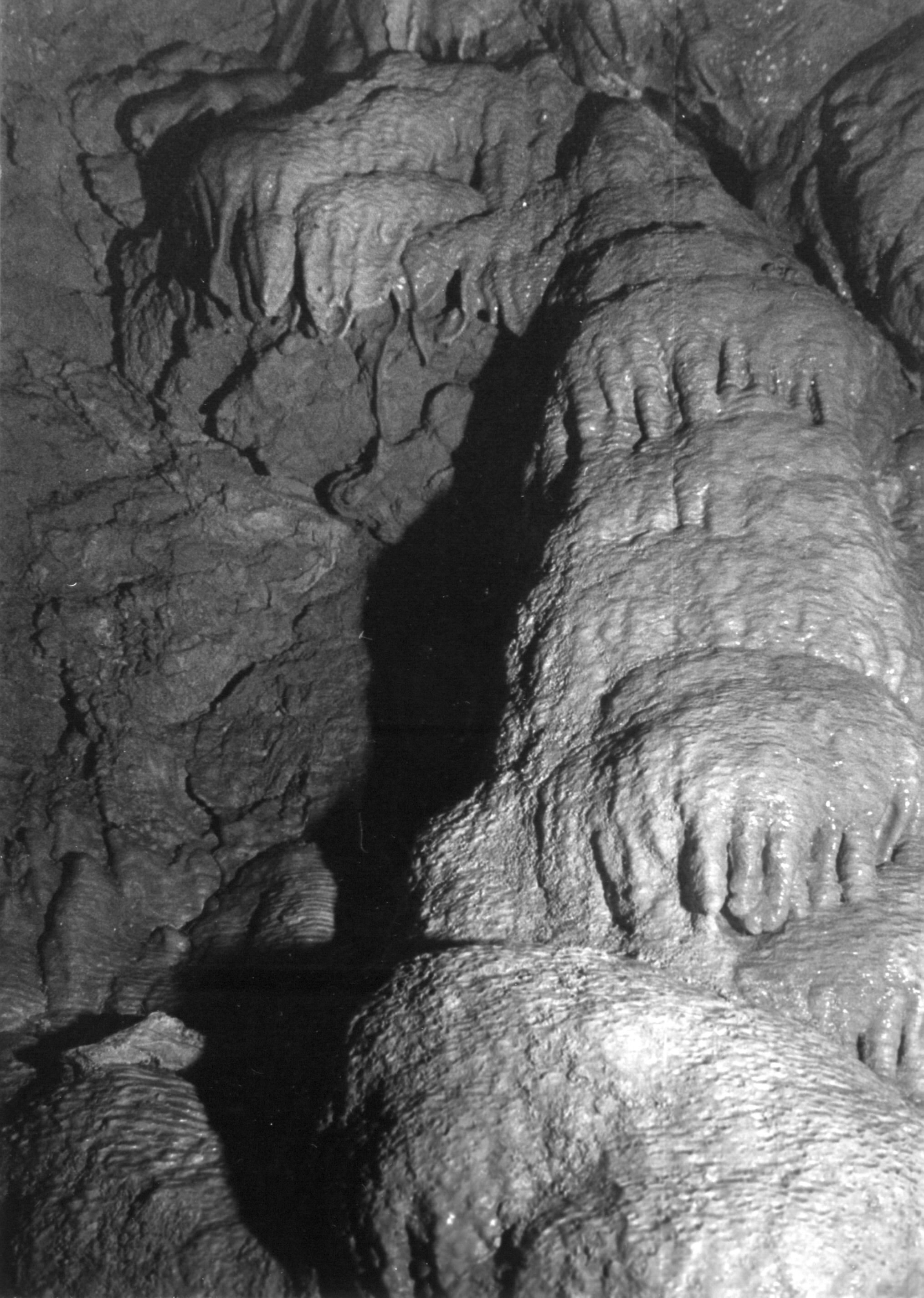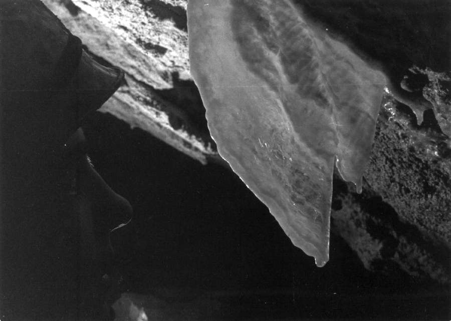Záclona v Krápníkové chodbě; v dobách, kdy byla jeskyně volně přístupná, ji však kdosi ulomil...