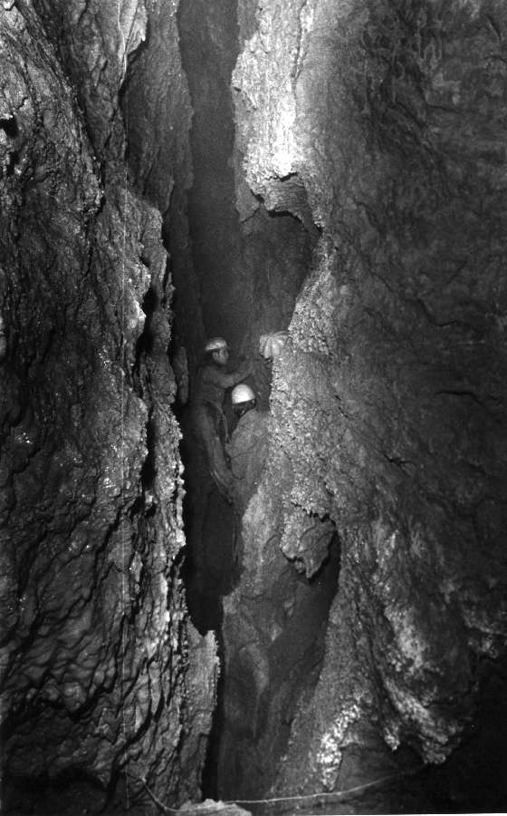 Svislá puklina do jezerních prostor při pohledu z Říceného dómu
