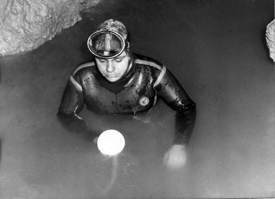 Potápěč v jezeře ve Vodním dómu na dně propasti