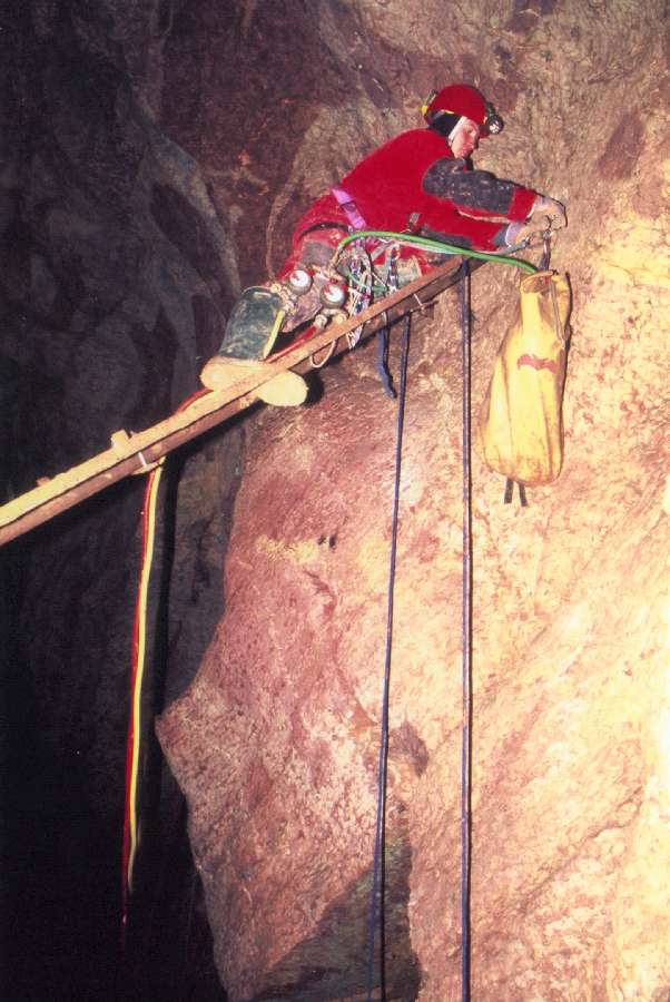Lucka napojuje redukční ventily s tlakovou lahví, která je ve speleovaku. ''Arnoldovo srdce'' se nachází mezi žlutou hadicí a lanem