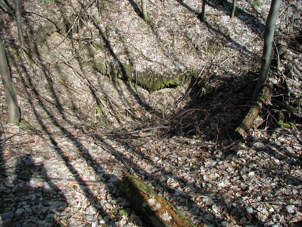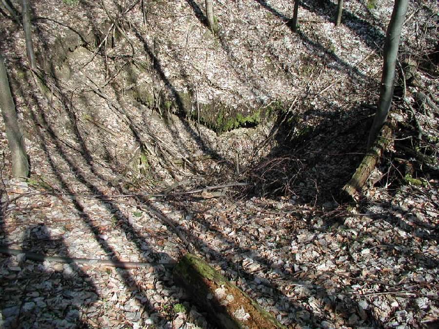 Vlčí jámy, závrt 104; najdeme ho při zelené značce kousek od závrtu 105 směrem k Arnice; kdysi zde bylo kopáno do hloubky 3 metry