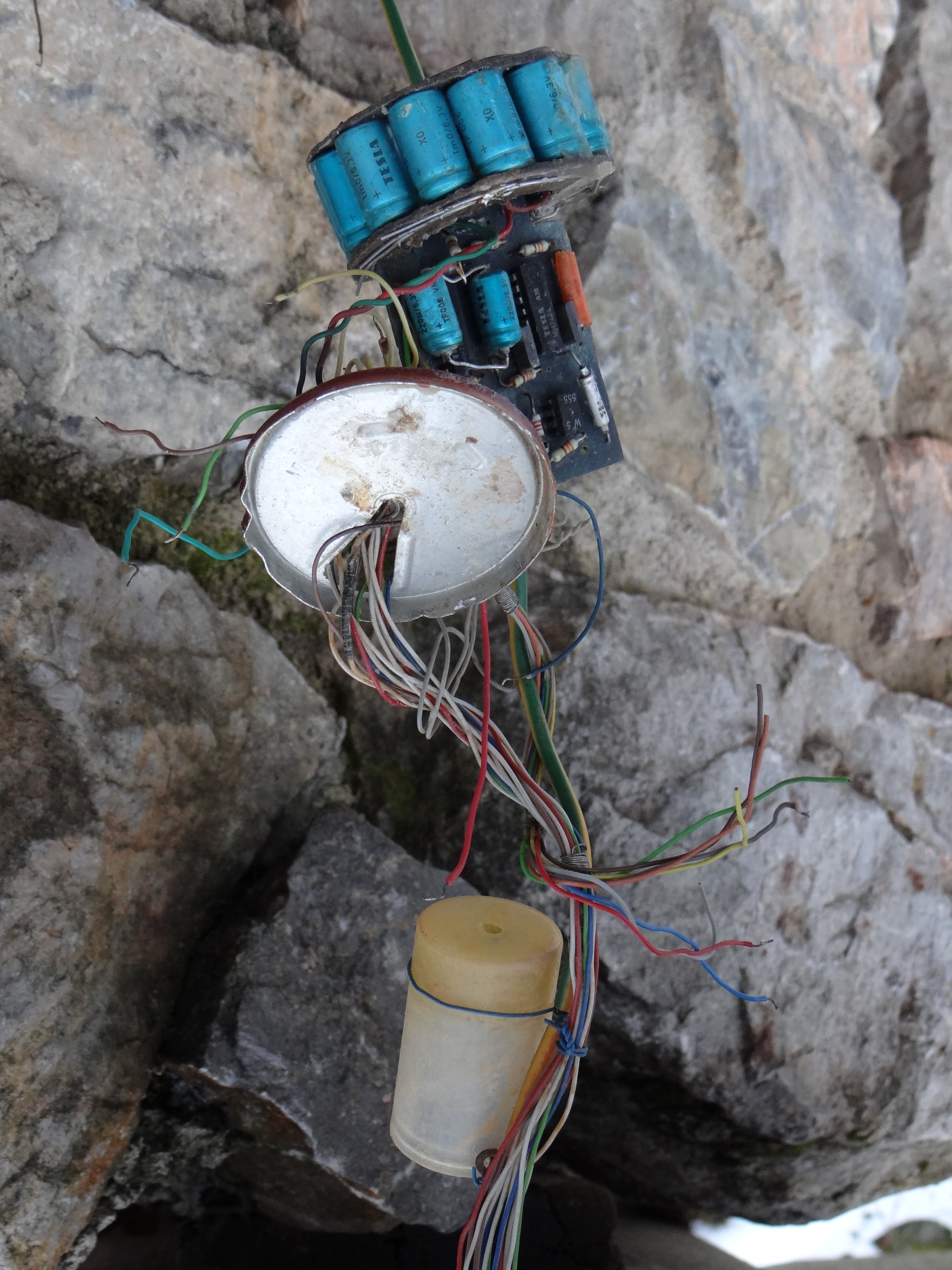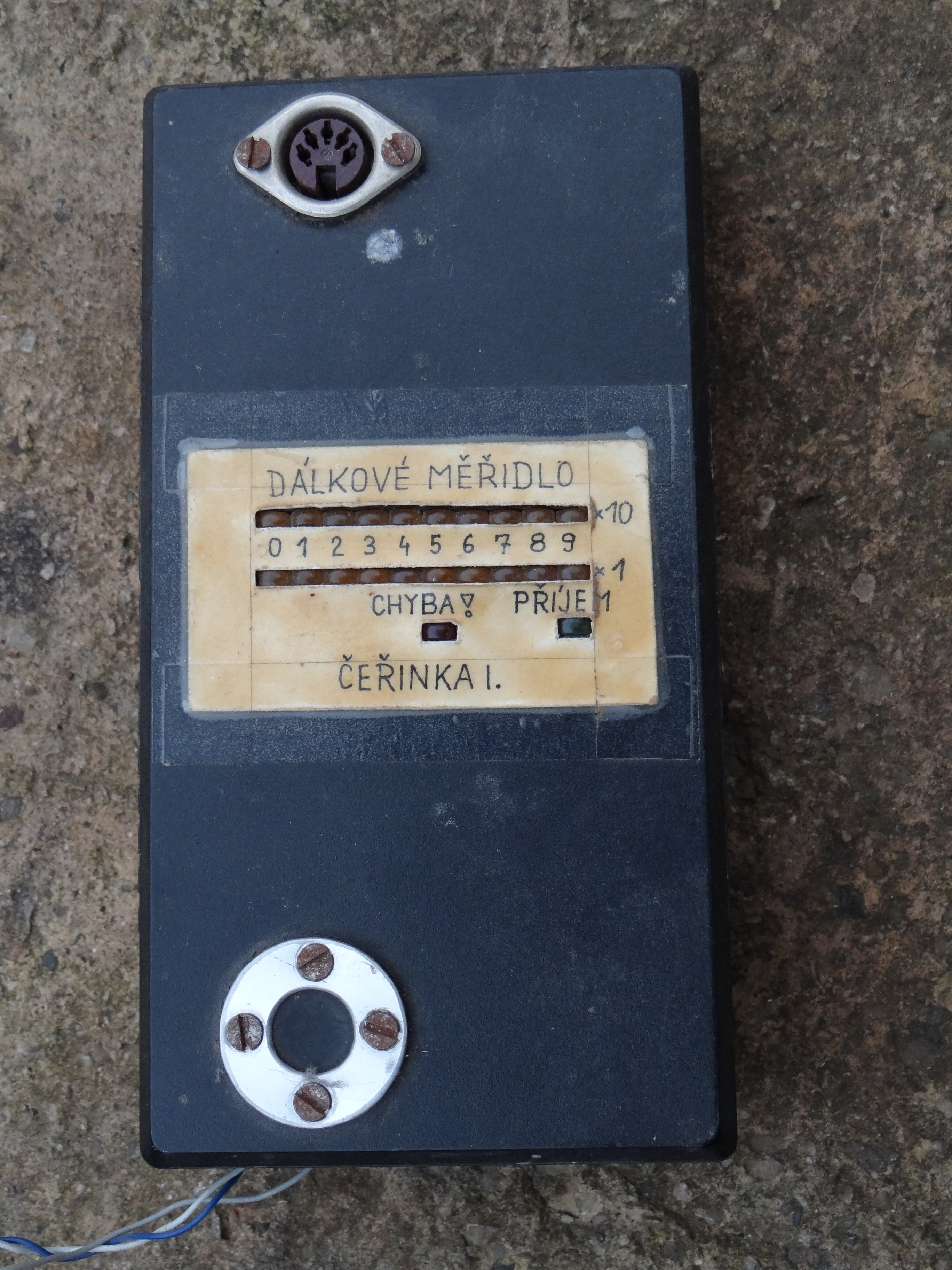 Pasivní závěsné měřidlo autora fotografií fungující na principu spínání čidel vlhkosti.