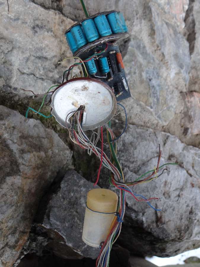 Byl to řetěz čidel vzdálených od sebe 0,5 m. Data bylo možné získat pouze po příchodu ke vchodu do jeskyně. Po zapojení obvodu jen pro tento účel vyrobený přístroj vyhodnotil, kolik čidel je zatopených a kolik jich je na suchu. Fungovalo však pouze 3 měsíce, neboť během dubna 1993 zlikvidoval rozvody neznámý lezec a měřidlo bylo do srpna mimo provoz. Poté bylo z jeskyně demontováno k opravě, ale již se tam nikdy nevrátilo. Nejen tato situace vedla k uzavření jeskyně ocelovými vrátky (1994), neboť se postupně stávala jakýmsi speleotrenažérem...