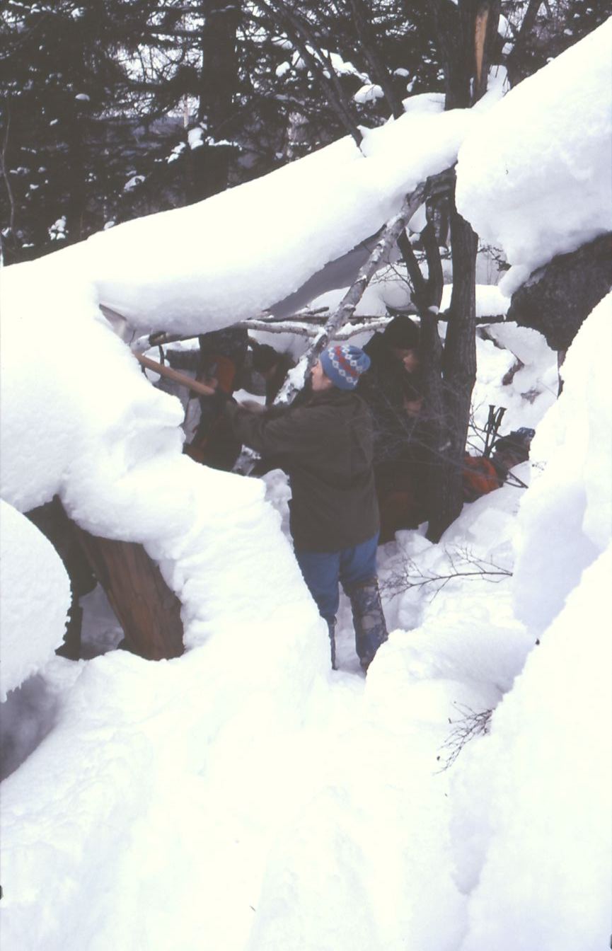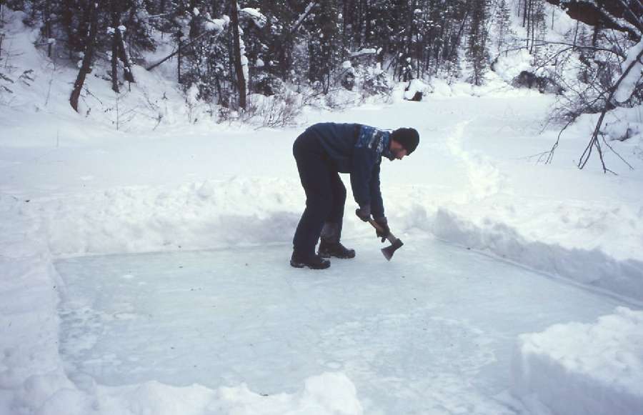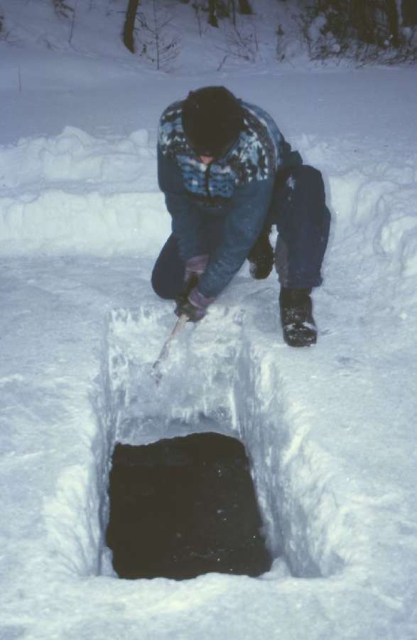 Preparation of icy %22swimming pool%22 and a hole for water supply