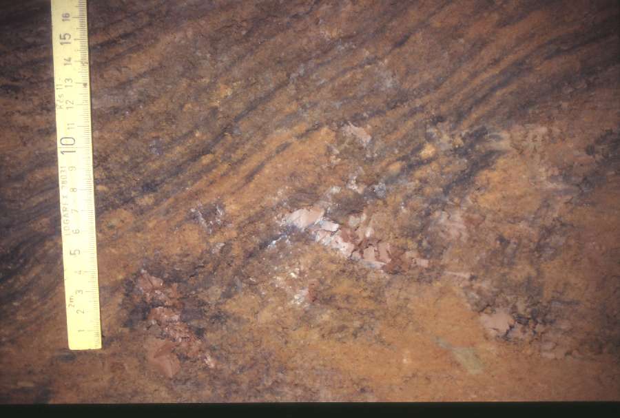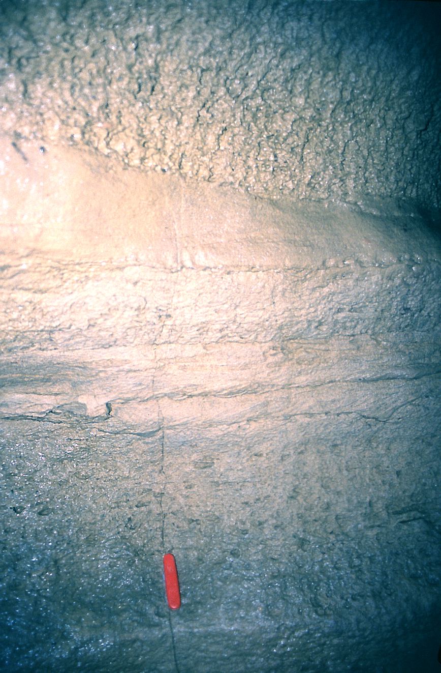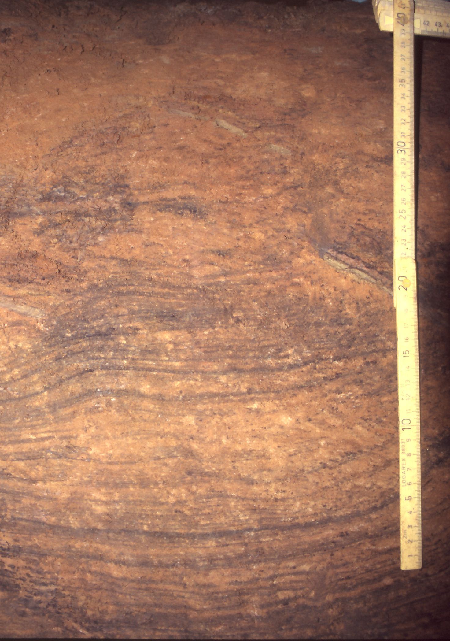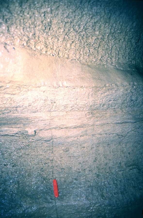 A detail of laminated silts exposed in the section